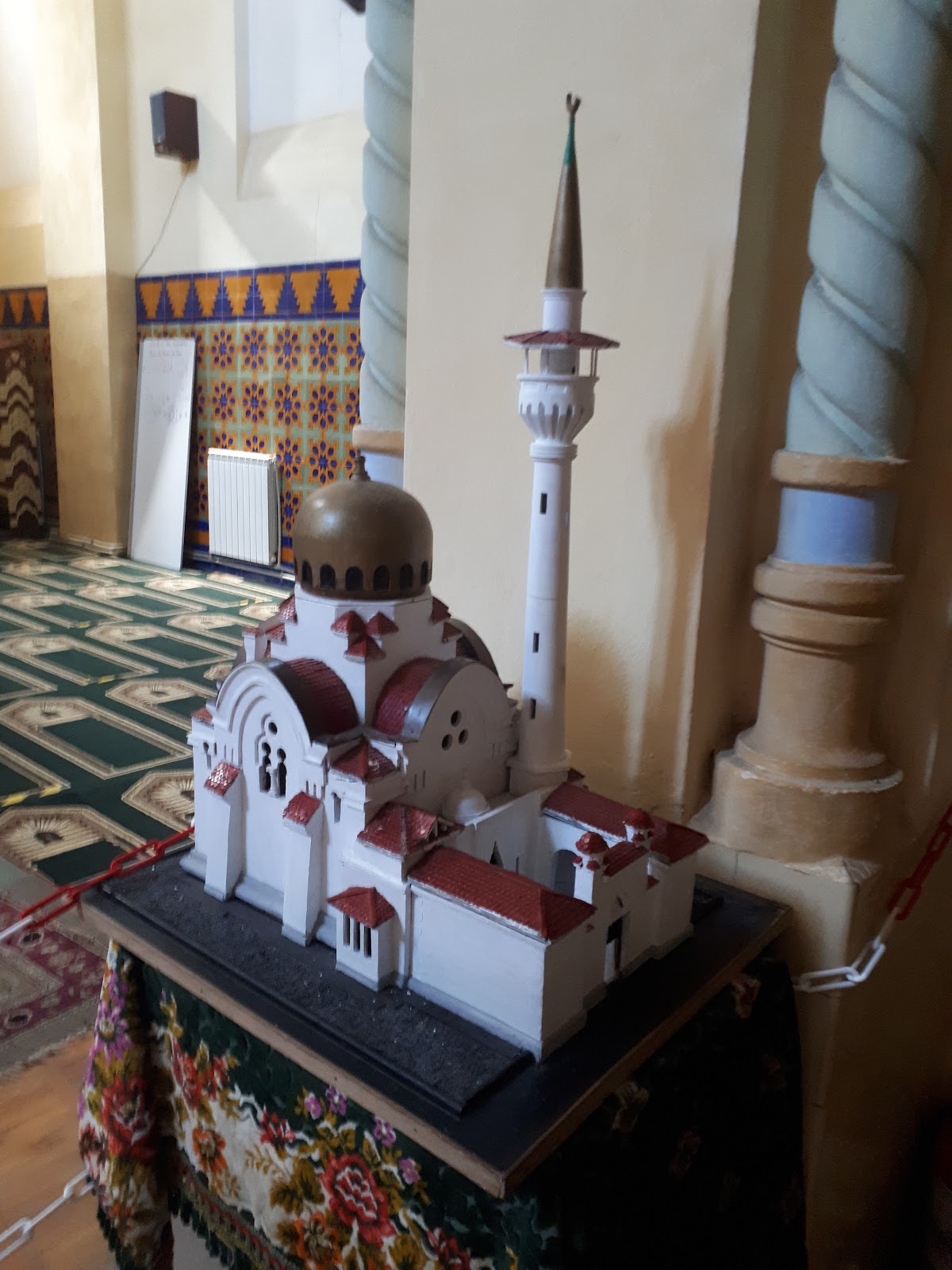 Po zabytkach starożytności, przeszliśmy kilka kroków do meczetu, gdzie na szczęście nie musieliśmy zdejmować butów, ponieważ służy chyba tylko jako muzeum, choć przewodnik twierdzi inaczej. Możliwe, że w określonych porach główną część sali modlitewnej odgradza się sznurem od części, gdzie wpuszcza się turystów, a w innych praktykujący muzułmanie korzystają z niego jako miejsce swojego kultu. Meczet Mahmudiye został zbudowany przez króla Karola I jako dar dla dobrudzkich muzułmanów w 1910 r. i jest wzorowany na meczecie z Konyi.