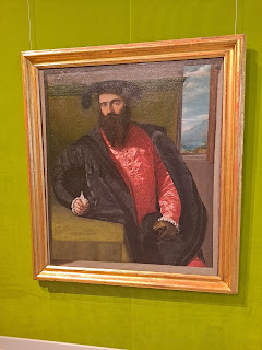 PO EDYCJI: Nieoceniona Margherita Jarosińska i tym razem okazała się ekspertką również w dziedzinie historii sztuki. Dzięki niej wiem już, że autorem tego obrazu jest Antonio Rasio. Jest to alegoria jednej z czterech pór roku, a mianowicie jesieni. Faktycznie w spisie sal Pinakoteki we Włoskiej Wikipedii widnieje nazwisko tego artysty i wymienione są te cztery obrazy, ale w odróżnieniu od innych artystów, nie ma linku do jego biogramu. Praktycznie trudno cokolwiek o nim znaleźć. Intrygujące jest również to, że akurat tej sali nie udostępniono zwiedzającym.