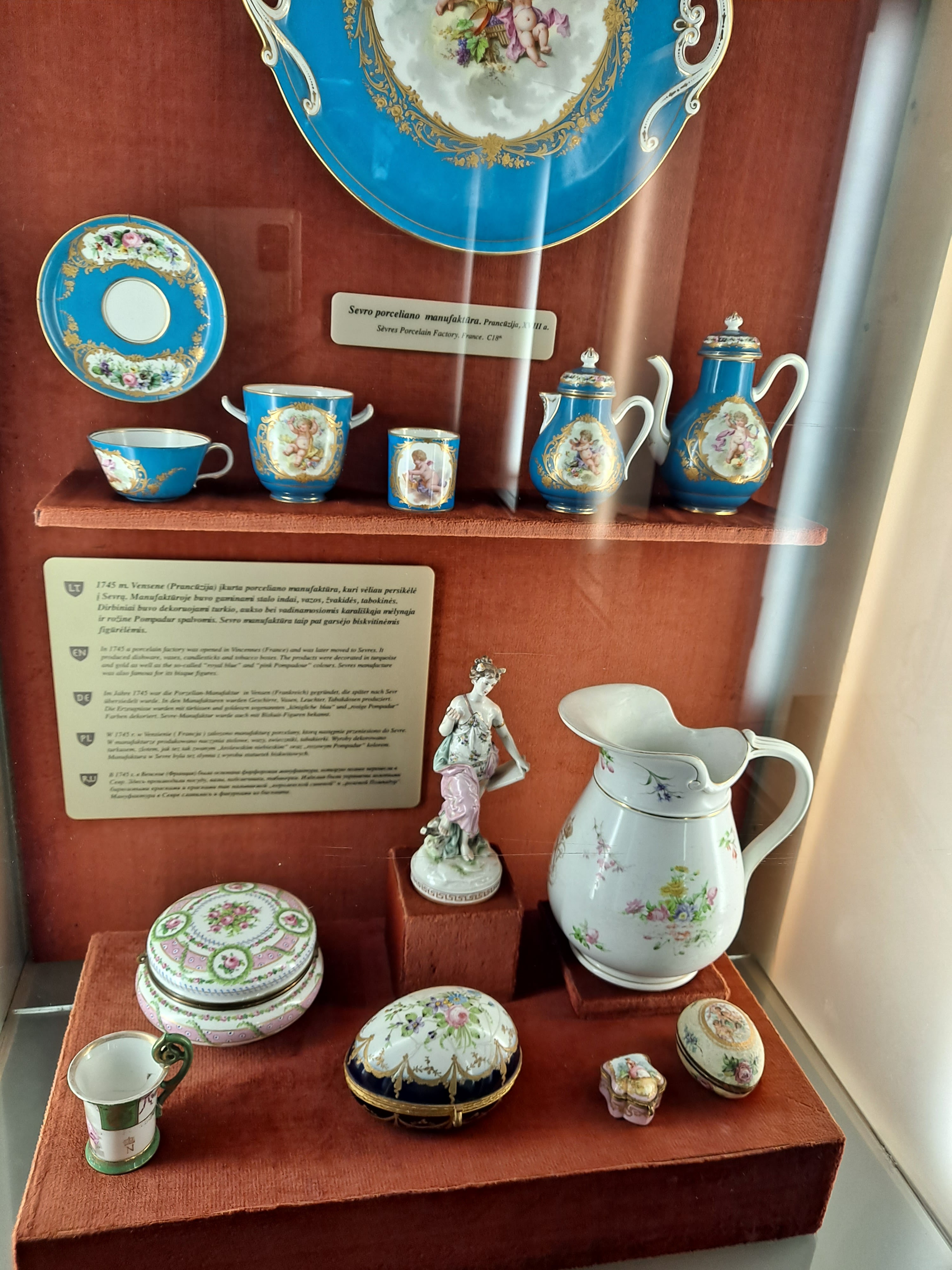 Po przejściu przez zamkową bramę zakupiliśmy bilety wstępu i zaczęliśmy zwiedzanie od pomieszczeń w przy lewym murze, które 20 lat temu na pewno nie były dostępne dla zwiedzających. Podziwialiśmy więc porcelanę, do której mam wielką słabość, kolekcje filiżanek, zastawy stołowej i bibelotów, podziwialiśmy różnych rodzajów fajki, a także wystrój wnętrz z meblami, które prawdopodobnie nie były autentyczne, ale pięknie zrobione w stylu wieku XVI. Co jakiś czas trzeba było wyjść na zewnątrz, żeby przejść do następnego pomieszczenia, ale deszcz był nam już obojętny. Następnie przeszliśmy po drewnianych schodach do bramy prowadzącej na wewnętrzny, dużo mniejszy dziedziniec i zaczęliśmy zwiedzać wnętrza zaczynając od tych znajdujących się na poziomie najniższym.